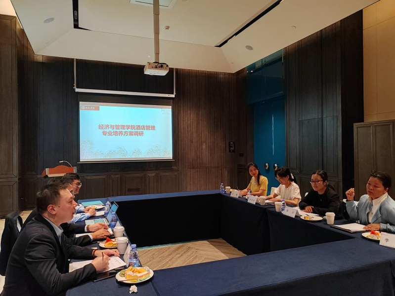 旅游系教师团队与酒店管理层围绕行业人才需求、岗位能力标准及课程体系优化等议题展开深入研讨。酒店方基于行业发展趋势和实际运营经验指出,当前行业亟需理论功底扎实且能快速胜任管理岗位的复合型人才,同时就专业课程设置与实践教学环节提出建设性意见,为完善公司酒店管理人才培养方案提供重要参考。