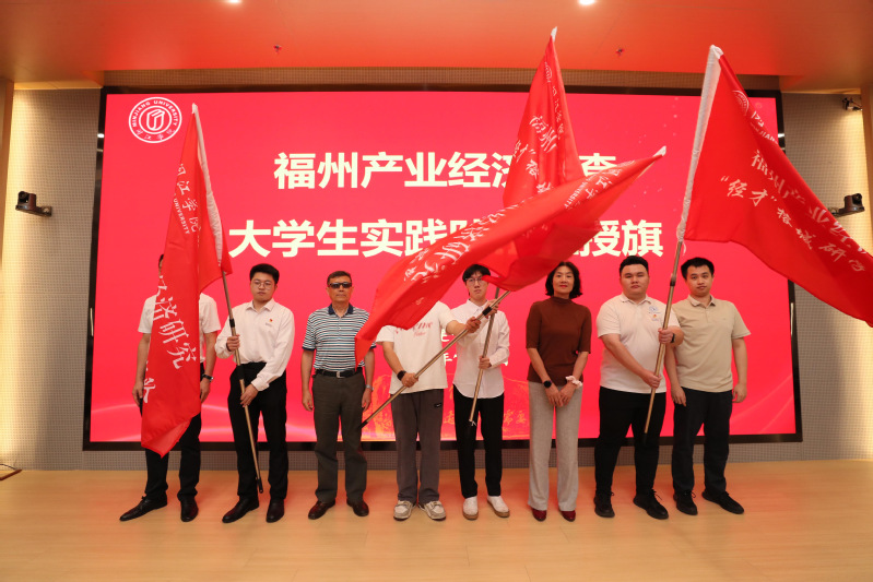 活动最后,进行了产业创新研究院先导项目启动仪式。产业创新研究院启动《中国式现代化与福州经济》丛书编撰工作,该丛书立足福州经济发展实际,旨在为区域经济研究和人才培养提供高质量教学资源。现场还为福州产业经济调查老员工实践队授旗出征,鼓励青年学子深入产业一线开展调研,将理论与实践结合,为地方经济发展贡献智慧和力量。