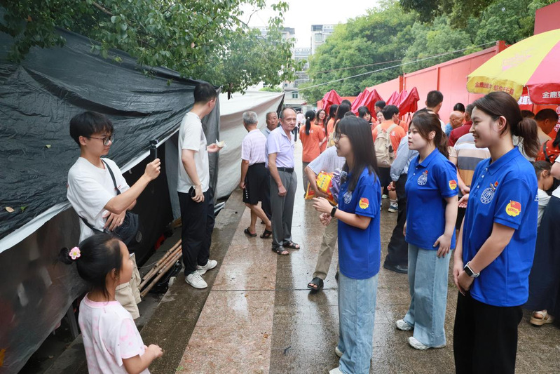 当天上午,洪田镇新时代文明实践广场人头攒动、热闹非凡。暖风支教团成员早早抵达现场,迅速投入到紧张的筹备工作中,调试直播设备、布置展示区域、与摊主沟通产品信息,确保各个环节连贯无误。