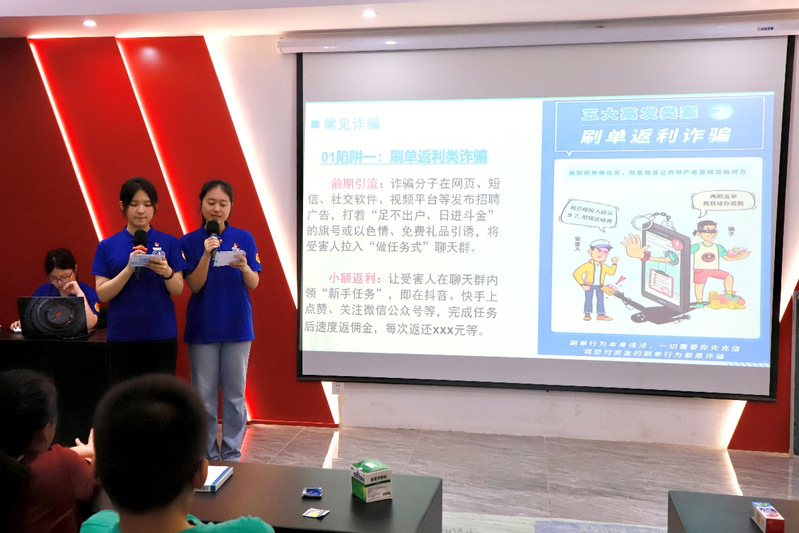 在“金融反诈大闯关”环节,每个家庭在支教团成员的引导下,通过沉浸式体验“政策伪造”“高收益诱惑”“信息泄露”等6类乡村高发诈骗场景,共同协作完成反诈挑战,在趣味互动中识破骗局,强化“不轻信、不签字、不泄露”的反诈意识。