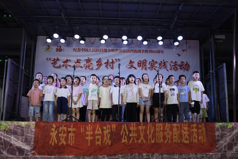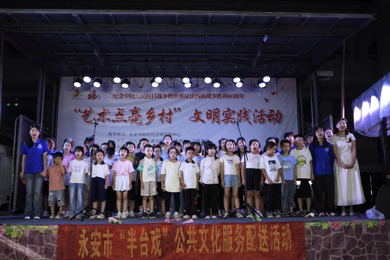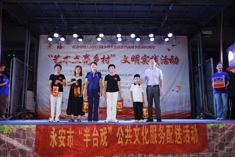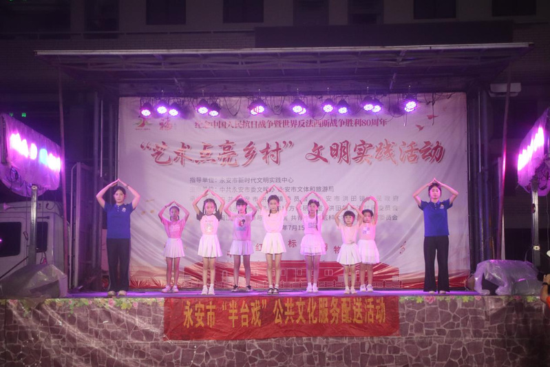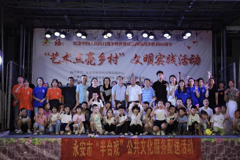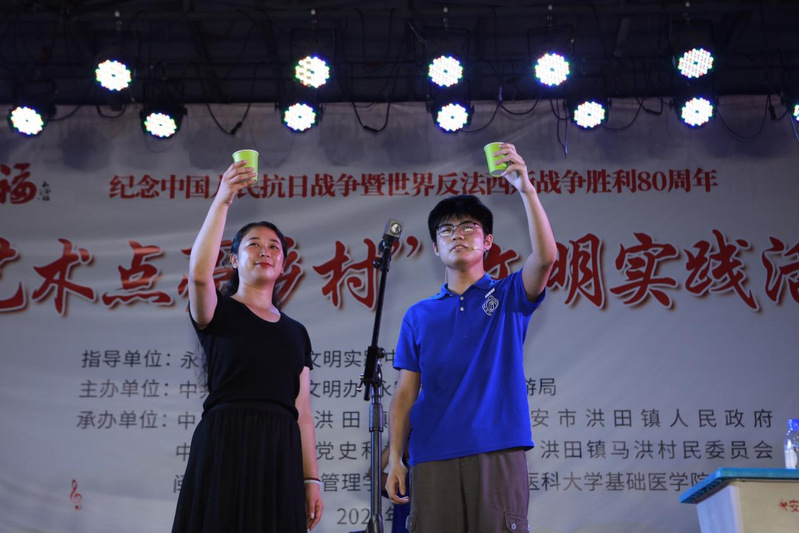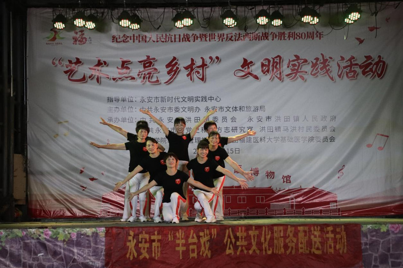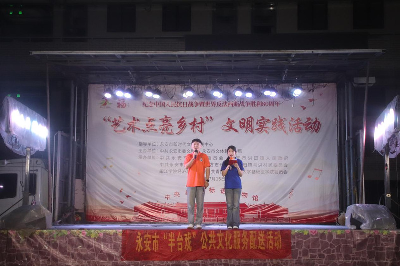 7月15日,WilliamHill体育联合中共永安市委宣传部、文明办,永安市文体和旅游局、中共永安市洪田镇委员会、福建医科大学基础医公司等单位在马洪村中央红军标语博物馆党性体验中心共同举办纪念中国人民抗日战争暨世界反法西斯战争胜利80周年文艺汇演暨“艺术点亮乡村”文明实践活动。中共永安市委宣传部常务副部长、文明办主任张瑞熙,中共永安市委宣传部七级职员、文明创建科科长高漳,永安市文体和旅游局副局长朱倩,洪田镇党委书记涂述灵,WilliamHill体育、福建医科大学基础医公司支教员工及马洪村民共计500余人参加晚会。