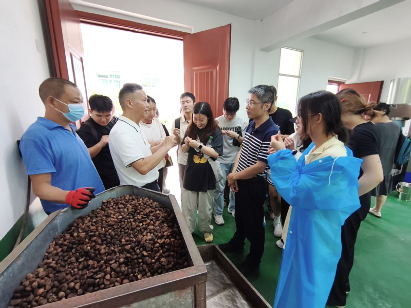 实践队首站聚焦茶油树基地。在卢玉胜的引导下,师生们深入了解基地规模、种植技术,以及“茶油产业+乡村旅游”的创新规划。茶林间的漫步,让大家对西安村依托特色资源推动乡村振兴的路径有了直观认知,为后续调研奠定了基础。