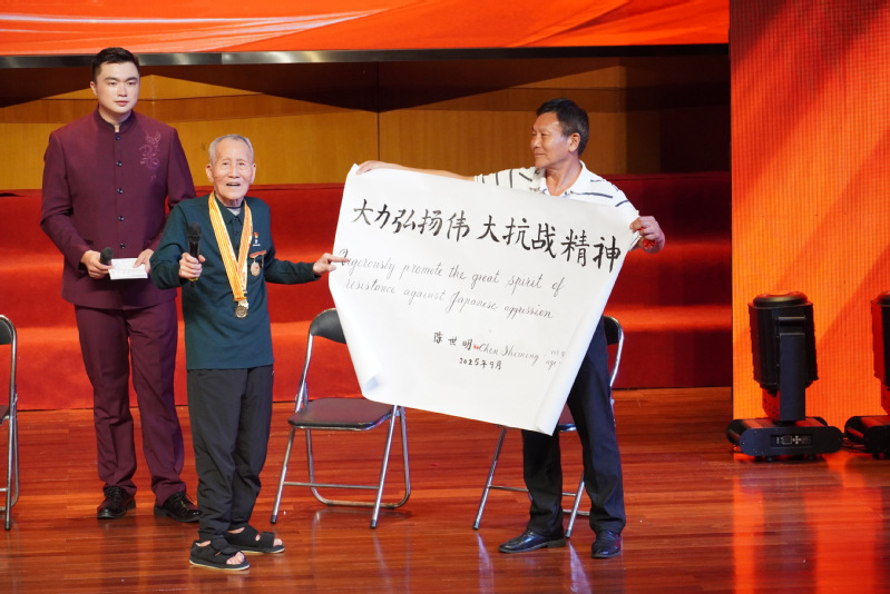 活动现场,三位百岁抗战老英雄受邀登台,结合亲身经历深情回顾烽火岁月的战斗往事,充分展现了抗战老兵坚定的理想信念和不屈不挠的民族气节。