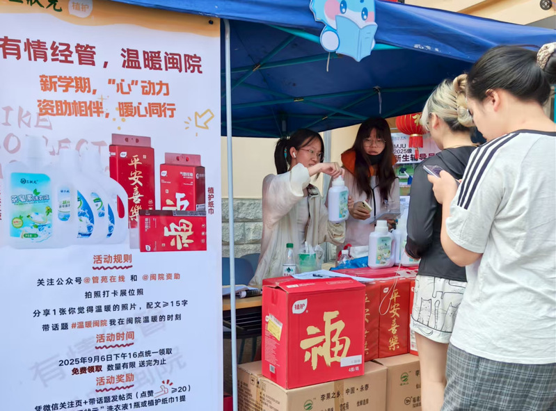 同时,公司联合“三状元”和植护,面向新老员工开展“温暖闽院”活动。员工凭借管苑在线、闽院资助公众号关注页及在“温暖闽院”话题的发言即可免费领取“三状元”洗衣液一瓶或者植护抽纸一提,同学们反响热烈。此次物资发放活动,在扩大校企合作产品知名度的同时,还提升了资助信息的关注度,一定程度上为宣传公司资助体系起到推力作用。