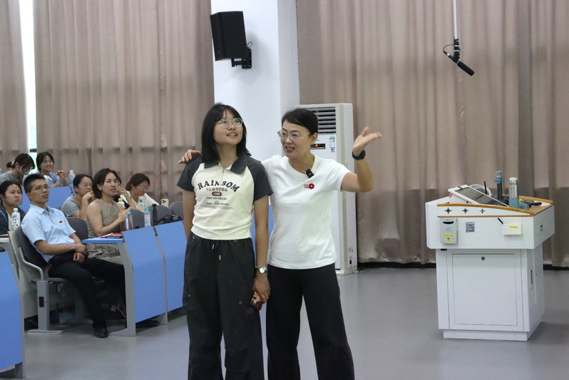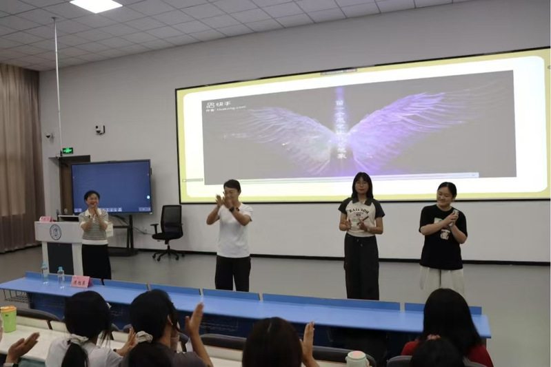 讲座现场,陈萍老师还邀请同学们上台一同互动,学习释放压力的方式。最后,陈老师以歌曲《隐形的翅膀》收尾,鼓励老员工激活内在潜力,凭借“勇气、自律、毅力”,在大学明确方向,不断提升生存能力和幸福能力,四年航程,从此刻起飞。