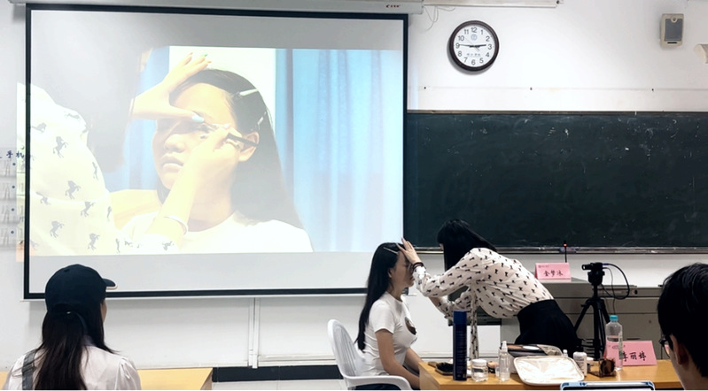 在本次训练营的“面试妆容急速变身术” 环节中,李老师首先明确核心原则:面试妆容需呈现自然精致、不张扬的效果。随后金梦冰老师针对不同场合的妆容要求做出了细致的指导,并邀请同学上台进行现场妆容示范。