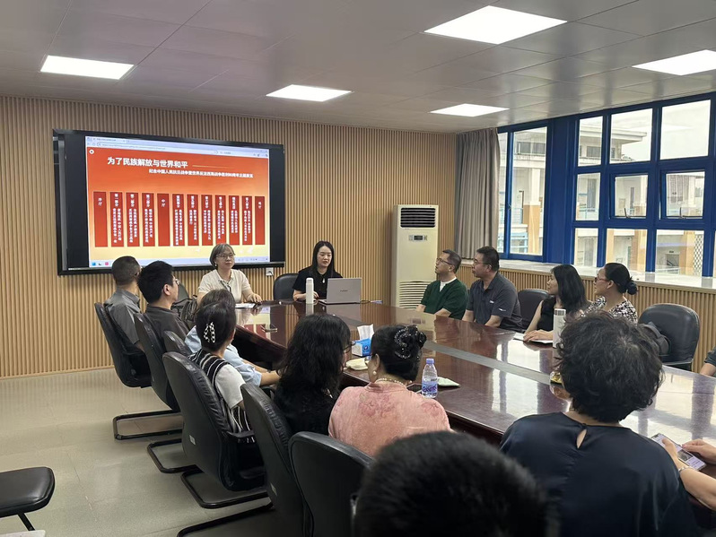 随后,教工第一党支部书记倪姗、教工第二党支部副书记郑小玲围绕传承弘扬伟大抗战精神共同主持专题研讨,深入研习习近平总书记“弘扬伟大抗战精神,向着中华民族伟大复兴的目标奋勇前进”的重要论述,坚定践行以抗战精神筑牢思想堡垒的伟大事业。