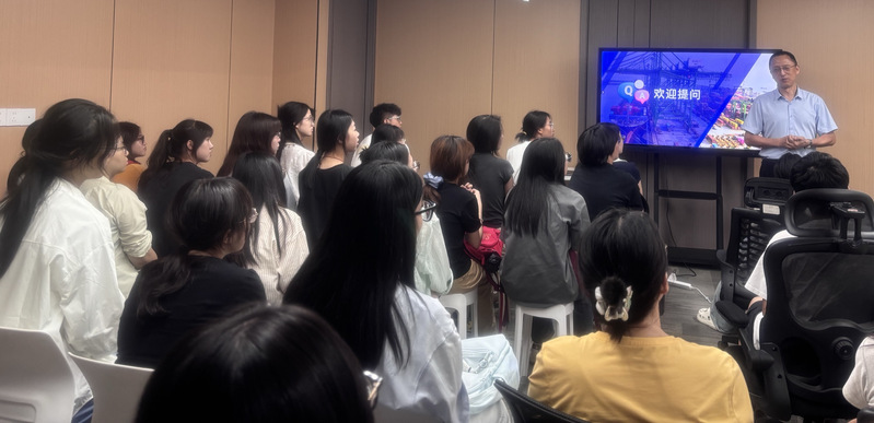 上马科技有限公司CEO、员工何南结合企业实践,给物流工程专业同学们详细介绍了全球供应链协同、大宗原材料与成品的多式联运等;总经理助理何斯予介绍上马科技智能仓储系统、智慧物流行业趋势等。同学们在上马科技的数字监控中心观摩实时更新的包裹信息以及全国范围内物资流动的实时镜像,感受供应链全程可视、可管、可优化,让同学们认知新时代科技感十足的智慧物流。