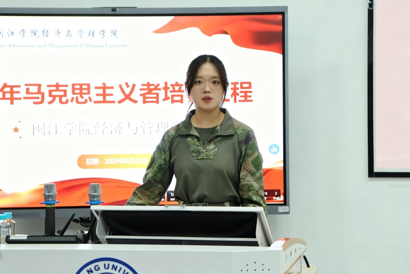 9月22日召开的“山河无恙,吾辈自强”主题宣讲会上,曾服役于武警甘肃总队兰州支队的退役女兵,来自2025级酒店管理专业的陶睿同学作“致敬橄榄绿,守护万家安”的宣讲,分享自身的入伍经历,讲述了中国武警“用脚步丈量平安,用责任铸就防线”的赤诚担当,呼吁青年们增强国防意识,共同守护家园。