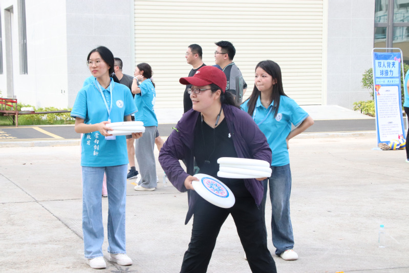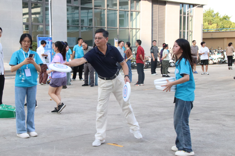 教职工趣味运动会包含了扔飞镖、投乒乓球、不倒森林等七个项目。公司教师在赛场上活力充沛,在团队项目中齐心协力,相互鼓励。现场还开展了温暖的亲子项目,欢笑声与喝彩声不绝于耳。