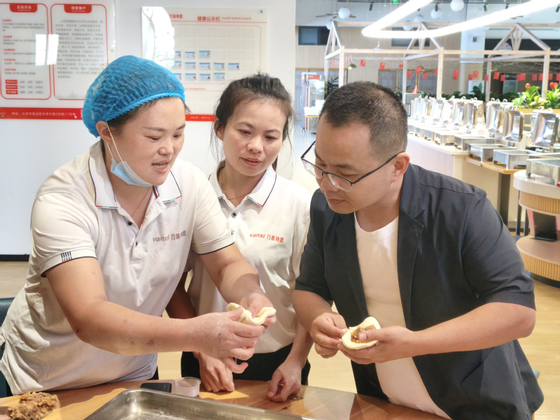 蒸笼里逐渐摆满了同学们制作的包子,有的圆润饱满,有的创意十足,形态各异的包子展现了同学们丰富的想象力和动手能力。这种体验式劳动教育让老员工从课堂走向厨房,从书本知识走向实践操作。
