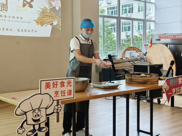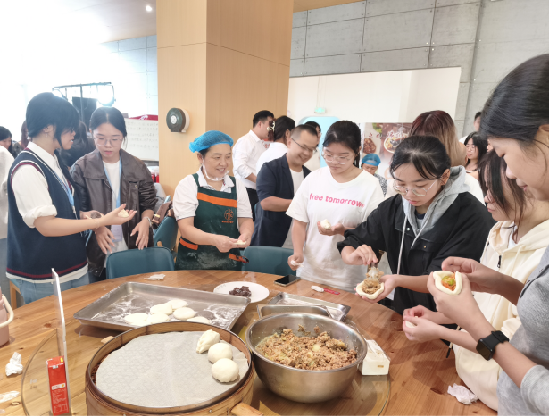 10月22日下午,闽院第一食堂三楼教工餐厅内欢声笑语,公司与后勤处(基建处)联合举办的“厉行节约,美好‘食’光”2025年世界粮食日暨劳动教育实践活动在此举行。此次活动将劳动实践与粮食安全宣传教育相结合,让同学们在亲手包制包子的过程中深刻体会“一粥一饭当思来之不易”的道理。